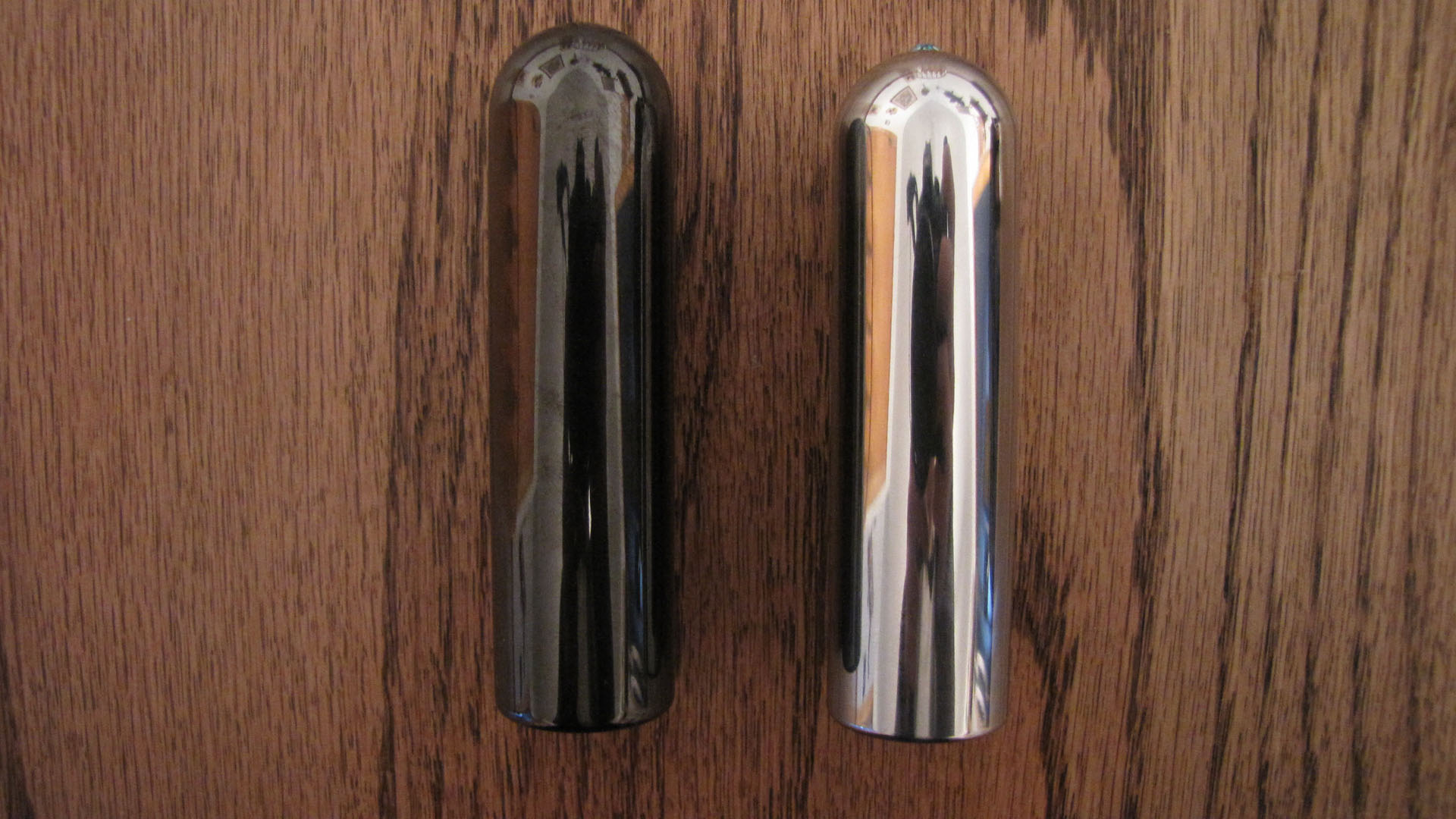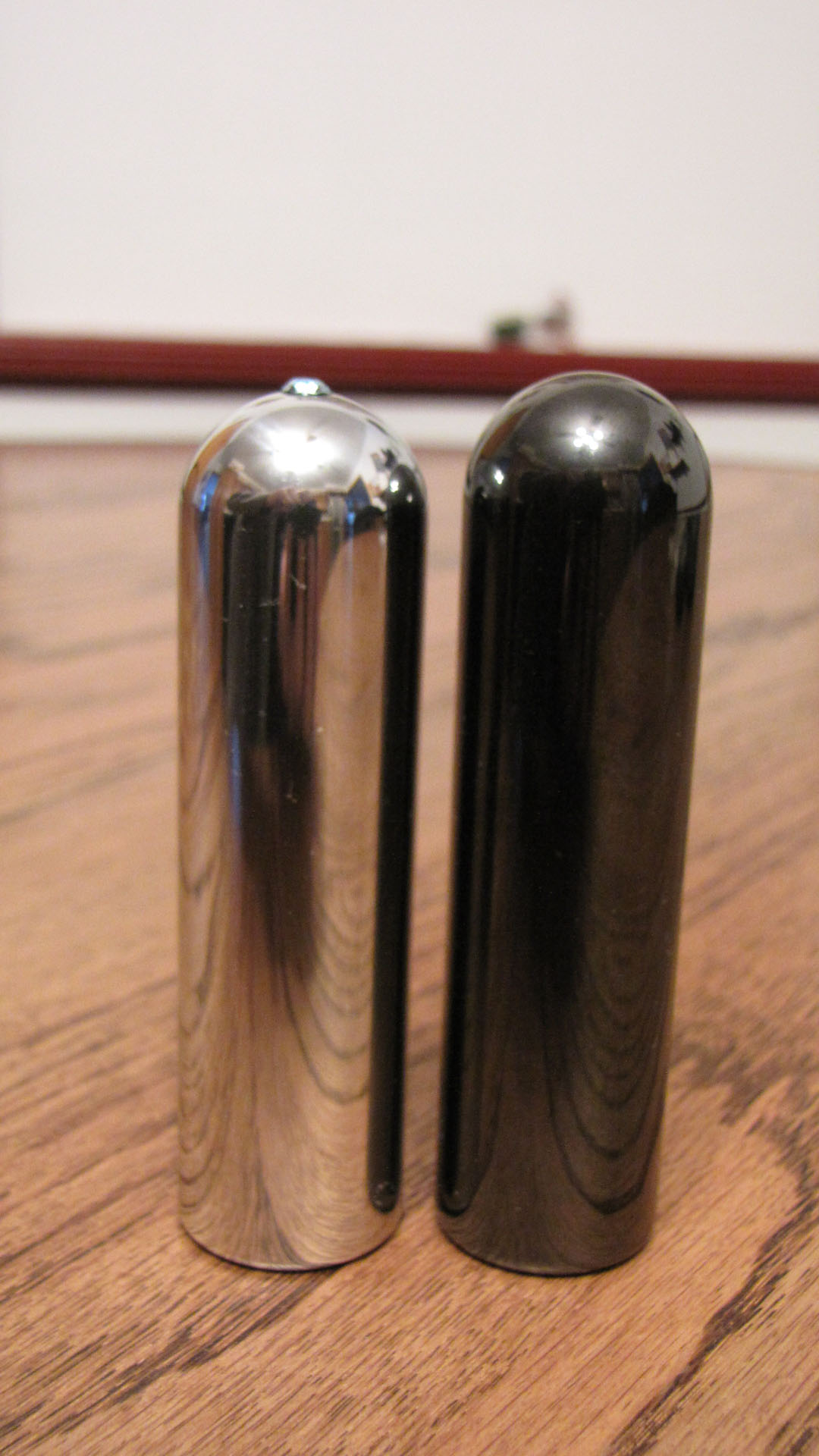 As a side light, I also used a zirconium bar on this recording and included a few pics of it below. It's a bit lighter than my BJS bar and they are both 3 3/8" long and 15/16" in diameter. The zirc is an excellent bar! I feel the zirc is slightly more slippery against the strings than the chrome BJS bar and has a small amount less sustain. Either bar is a really great product and I know users that prefer one over the other. I intend to keep both and will migrate to using the zirc on my dobro and on steel when I need to move the bar a bit quicker on faster songs.