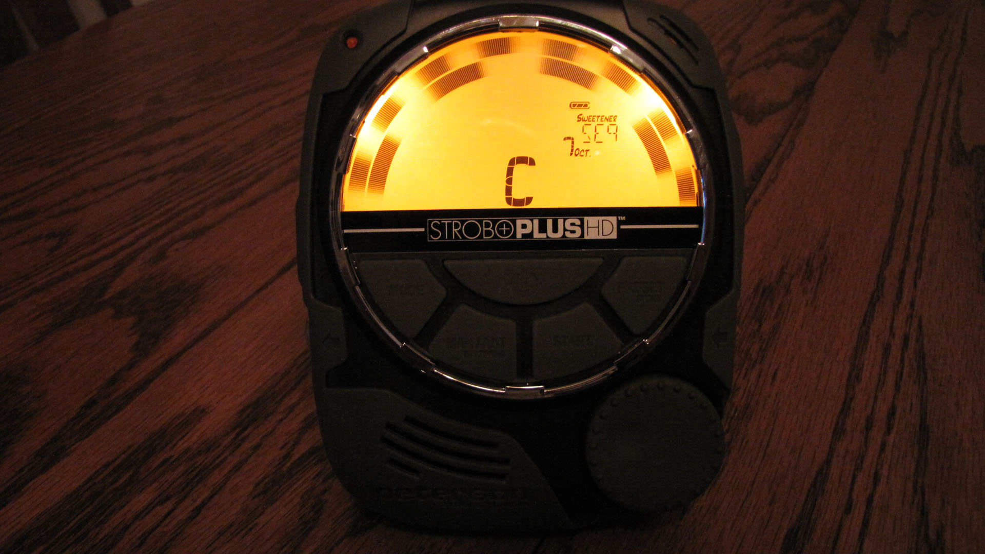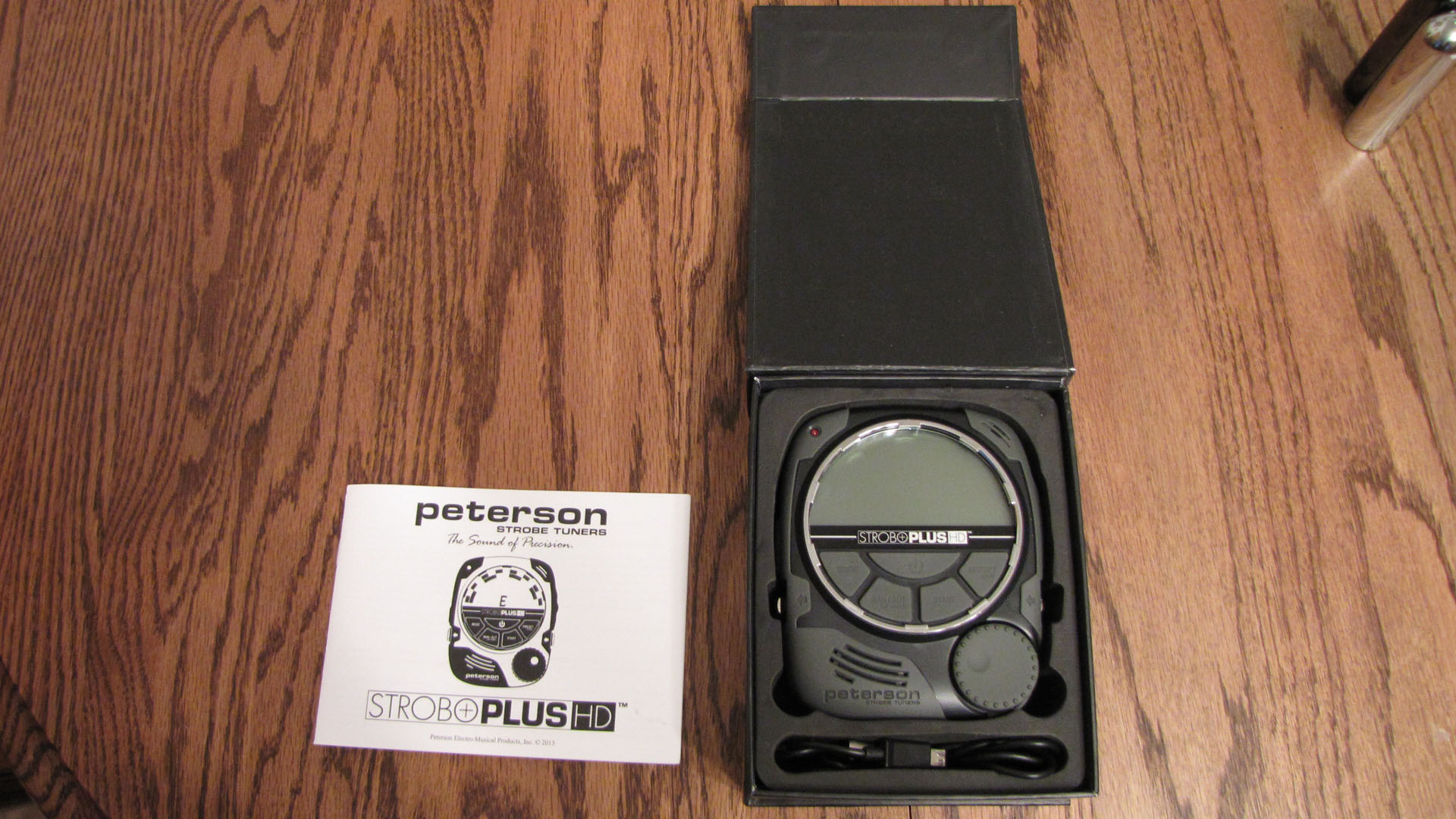 Peterson StroboPlus HD Web Site The StroboPlus HD is really an amazing tuner! It's a major step up from the StroboFlip in many ways. The strobe screen is much larger and brighter. The strobe has two concentric semi-circles which IMHO is a lot simpler to read that the old StroboFlip's 4 vertical strobe bars. The tuner locks in fast and if your instrument's pitch is stable, the bars settle quickly and stay put. I used this to tune my 5 string fiddle, 4 string bass guitar, 6 string Telecaster electric, 6 string Ovation acoustic (unplugged and using the StroboPlus HD built in mic) and my 10 string MSA Legend pedal steel guitar (E9th only so far). In every case it tuned faster and was easier than the StroboFlip to interpret the readout. Keep in mind that the StroboFlip is quite a great tuner but this one is just that much better. I used the built in tuning sweeteners in all cases. For pedal steel E9th I used SE9 for the open tuning and SP9 for the pedals. I was prepared to detune the fiddle 9 cents, detune the bass guitar a bit and customize the pedal steel settings until I found that all the instruments played in tune nicely with each other using the built in settings. I am pretty fussy about tuning but found that with the usual amount of care, the stock tunings worked great. The "usual amount of care" includes tuning the 6 string guitar string, bending it a bit, retuning it again etc. for get the slippage over the nut where it would be after a few bends during normal play. For the pedal steel it includes tuning a string, bouncing the pedal that raises or lowers the string. then retuning it until it is tuned to pitch after a normal pedal/ knee lever cycle. I had a chance to try and return a Sonic Research Turbo Tuner for 7 days prior to using the StroboPlus HD. The Sonic is more compact and also features the ability to have multiple settings for the same pitch within the same sweetener. So the 1st string open F# can be set to a different pitch that the F# obtained on the E9th string 4 by activating the 3rd floor pedal. Overall I prefer the StroboPlus HD over the Sonic. The StroboPlus HD has the USB port for upgrades, charging and downloading/ uploading tunings which the Sonic lacks. The Strobo Plus also has a bigger, more stable display and costs about $50 less at this point in time. There are a few minor flaws with the StroboPlus HD that are not really a big deal. I found that the standard USB plugs on my Samsung home and car chargers did not fit the tuner's jacks very well. They are pretty much standard cords that work with all my devices but they don't stay seated in the tuner's jack very well. You can see in the pics below that the USB cord that comes with the Strobo has a longer metal connector on the tuner side. It's snout measures 0.300" so it's a bit longer than most cell phone connectors when it comes to depth of insertion. The Samsung home charger USB cord has a 0.200" snout and the Samsung car charger snout measures 0.225". The length of the StoboPlus HD USB cord is a bit short for my liking as well. It's about 32.5" long whereas the Samsung AC charger cord is 58.5" long and the standard Ipod cord (a popular cord that uses a different device connector but included for reference) is about 40.5" long. See the cord comparison picture below with the Strobo cord connector on the left. Another minor gripe is that the Mode, Start, Preset etc keys are not backlit or highlighted in any way (such as white paint text) or otherwise denoted on the screen above. They are impossible to see except in fairly bright direct lighting. This will become a very minor thing, I believe, once I get the key functions memorized. One last small annoyance would be that having to hold the ON/OFF key for two seconds is about twice as long as is needed and it seems like forever after you use it a few times. Perhaps a microcode fix to trim that back to 1 second? No USB Port Handy For Charging? No Problem!Here's a link to a typical AC powered USB charging cord that you can use as advertised or swap in your Peterson USB card with the longer device snout:AC USB Power Cord on Amazon.com